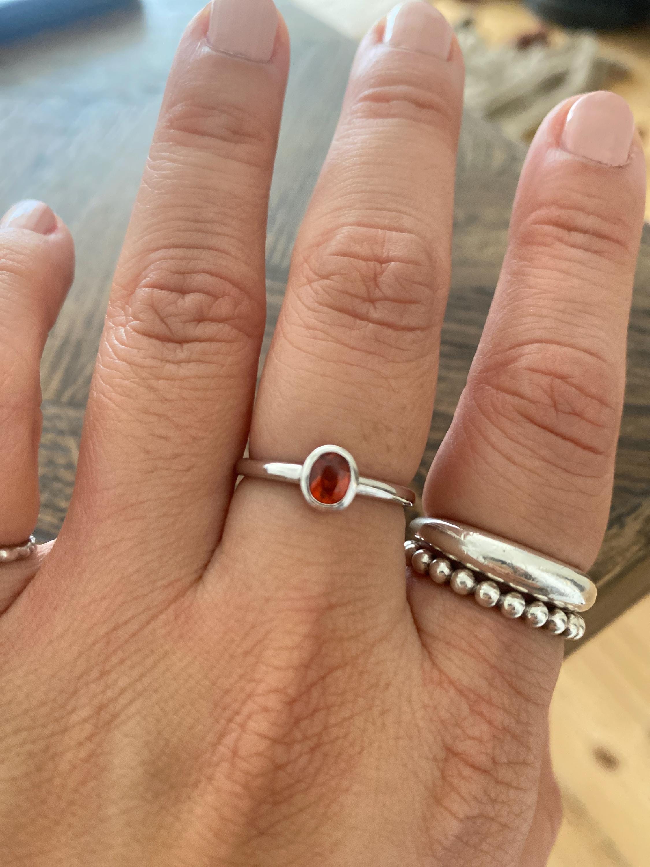 Dainty Genuine Citrine Silver Ring- Oval Orange Stack Bezel Ring- November Birthstone Ring for Children Teen