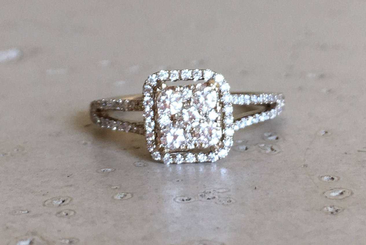 White Gold Diamond Ring- Cluster Diamond Engagement Ring- Halo Diamond Promise Ring- Square Shaped Diamond Mutlistone Ring